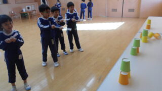 未分類 年長科学教室 R8.1.30(金) 今年最後の科学教室は「空気であそぼう!」でした。空気砲を使ってスポンジを飛ばしたり、スモークマシーンを使って煙でリングを作ってあそんだりしました。 2026.03.03 未分類