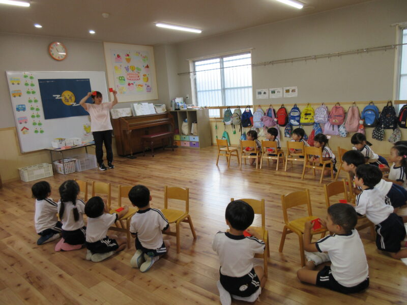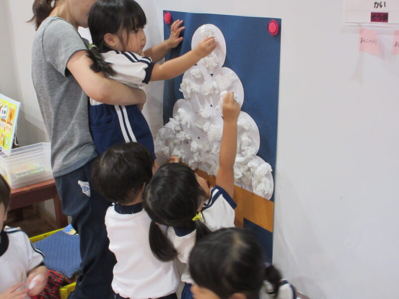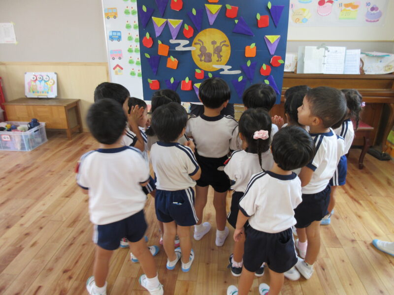 お団子やお餅、ススキなどをお供えして、お月様を眺める「お月見」を子ども達に知ってもらうことを目的に各クラスでお月見会を行いました。