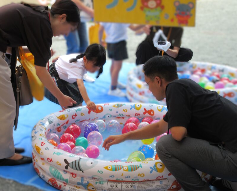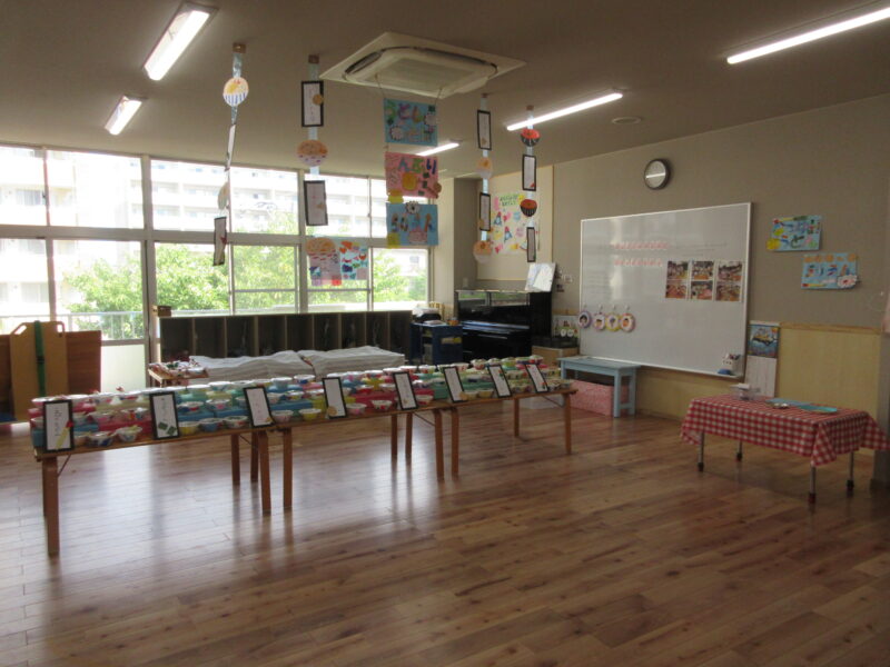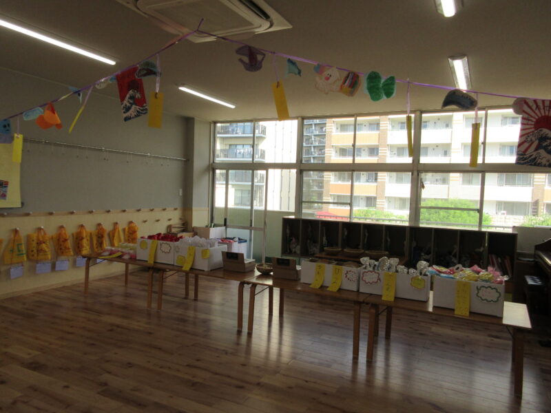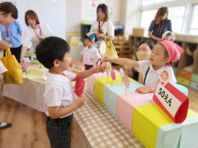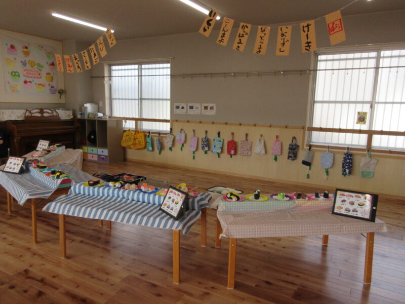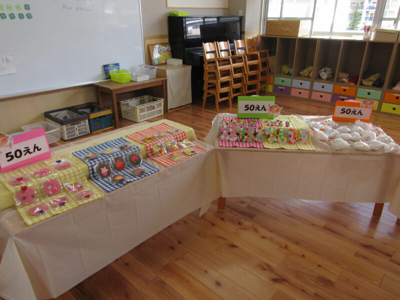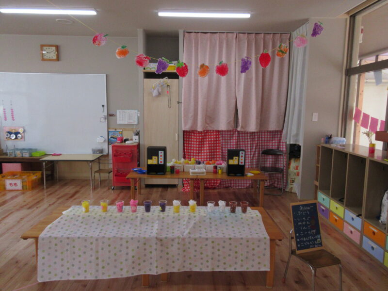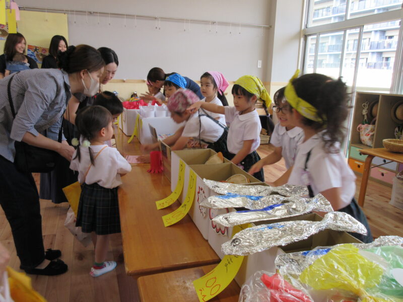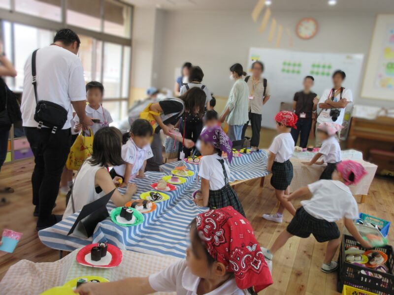 子どもバザー R7.9.19(金) 未分類 2025.10.20 1学期から各クラスで準備を進めてきた子どもバザー(お店屋さんごっこ)を開催することができました。お家の方々にも参加してもらい、一緒に楽しみました。 くだもの屋さん ジュース屋さん マラカス屋さん お寿司屋さん お菓子屋さん 魚屋さん うどん屋さん お寿司屋さん お魚屋さん お菓子屋さん フリスビー 段ボール迷路 ヨーヨー釣り ヨーヨー釣り