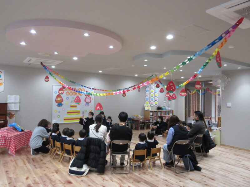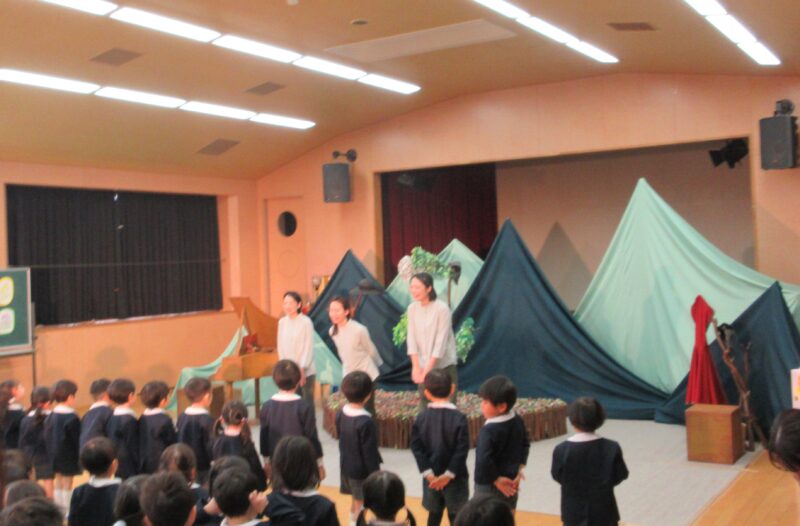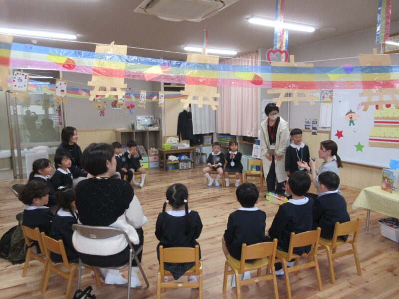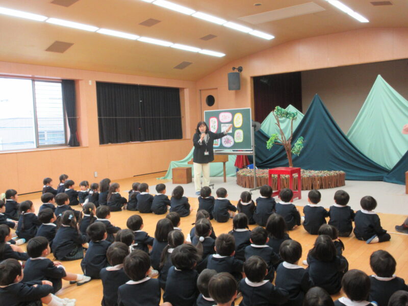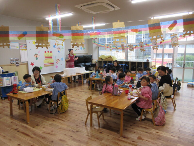2月3月生まれ誕生会 R8.2.27(金) 未分類クラス会 2026.04.08 各クラスでクラス会を行い、ホールではゲストの劇団さんぽさんの劇を観ました。 クラス会 クラス会 ホール会 園長先生のお話 劇団さんぽさん 園長先生手作りの花束をプレゼント カレーパーティー