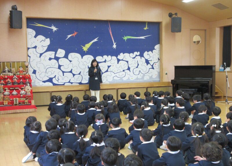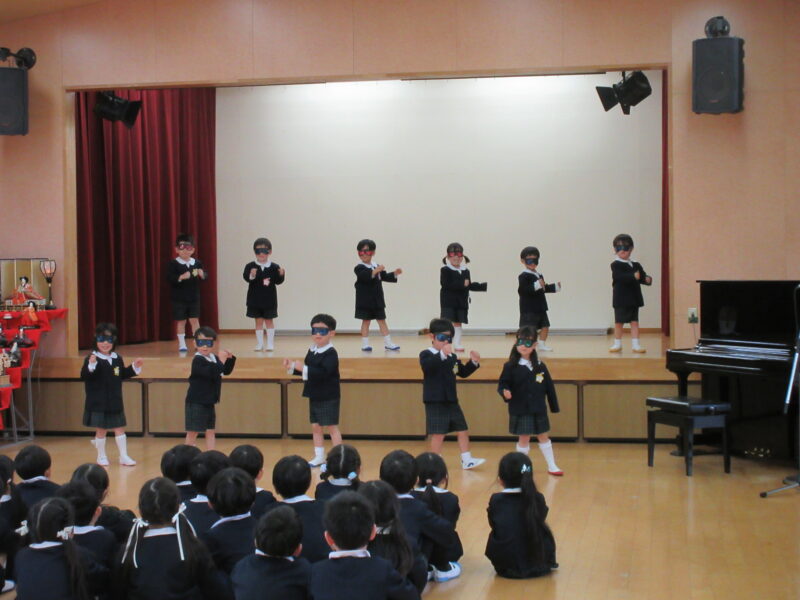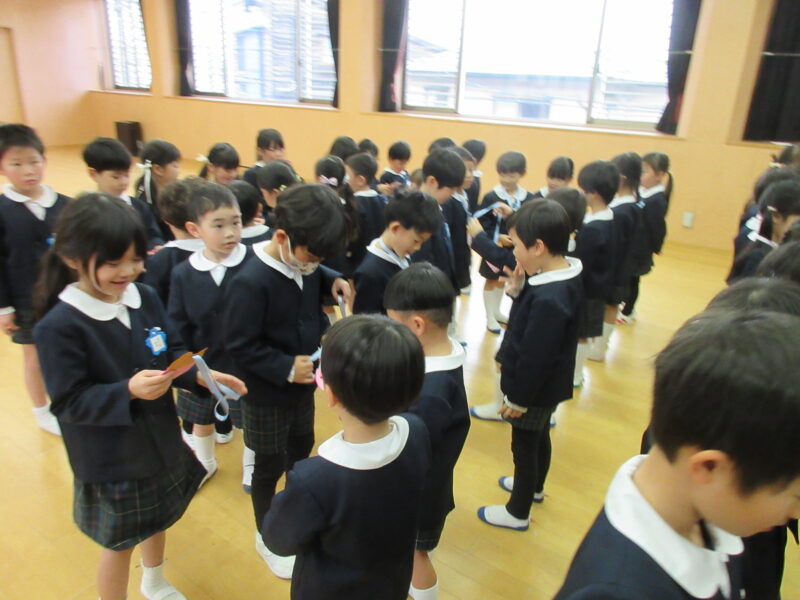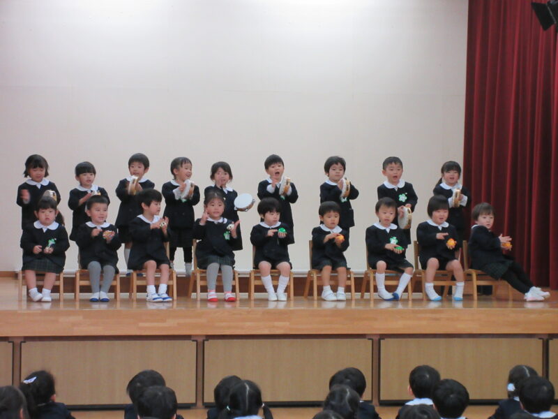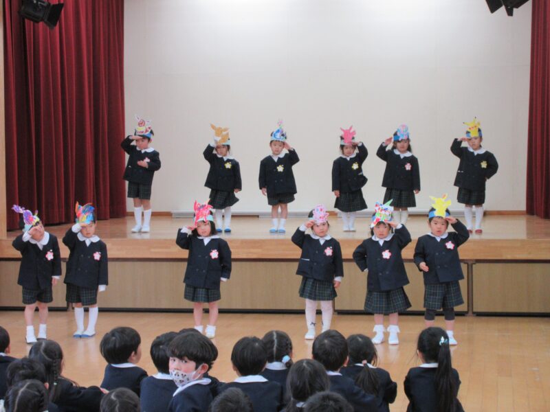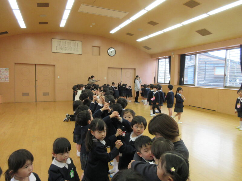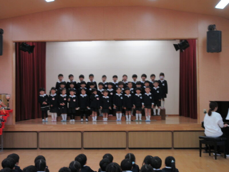 お別れ会 R8.3.6(金) 未分類年長組の入場 2026.04.08 卒園を迎える年長さんと在園児とのお別れ会を行いました。下のクラスの子ども達は、合奏や歌、ダンスのプレゼントをしました。お昼は、みんなでホールでお弁当を食べました。 年長組の入場 園長先生のお話 いちご組(合奏と歌のプレゼント) 年少組(ダンスのプレゼント) 年少組(ダンスのプレゼント) 年中組(歌のプレゼント) 年中からメダルのプレゼント 卒園児はみんなのアーチを通って退場 みんなでお弁当
