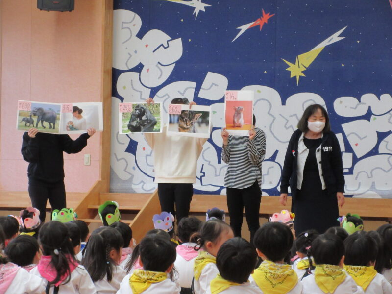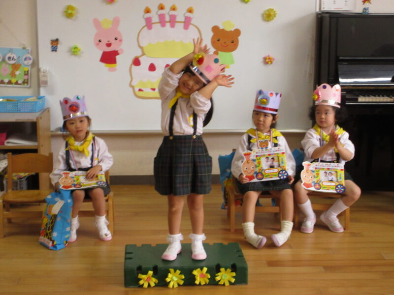 10・11月生まれ誕生会 R5.11.10(金) 未分類クラス会での様子♪ 2023.11.20 原幼稚園では、2ヶ月に1回誕生会を行っております。毎回ゲストの方をお招きして、誕生会を盛り上げていただいています♪今回のゲストは、パフォーマーの”Yaya”さん♪パントマイムやジャグリングといった楽しいパフォーマンスに驚きと、笑顔が溢れたひと時でした♪ クラス会での様子♪ プレゼントを貰ってにこにこ♪ Yayaさん マジックショー お誕生月のお友だちは皿回しに挑戦しました! ジャグリング 最後は園長先生からのプレゼント渡し お昼は、お家の方と一緒にカレーパーティです♪