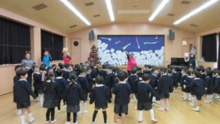 2学期の終園式を行いました。園長先生からは、2学期の頑張りをたくさん褒められました。その後、先生達とは、冬休みのおやくそくをしました。
